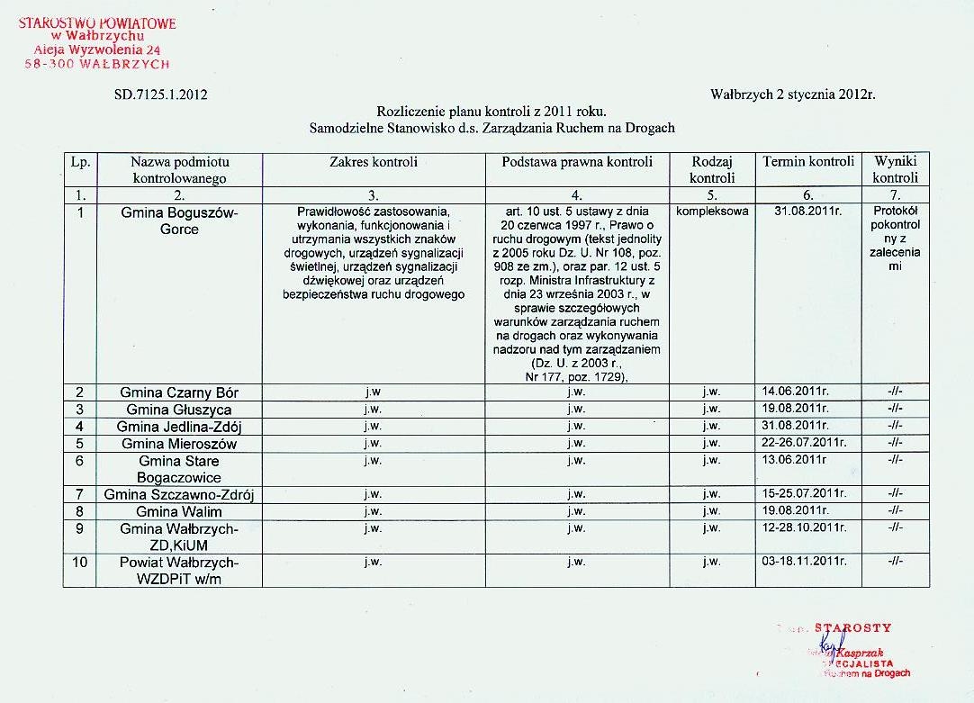 Rozliczenie planu kontroli z 2011 roku