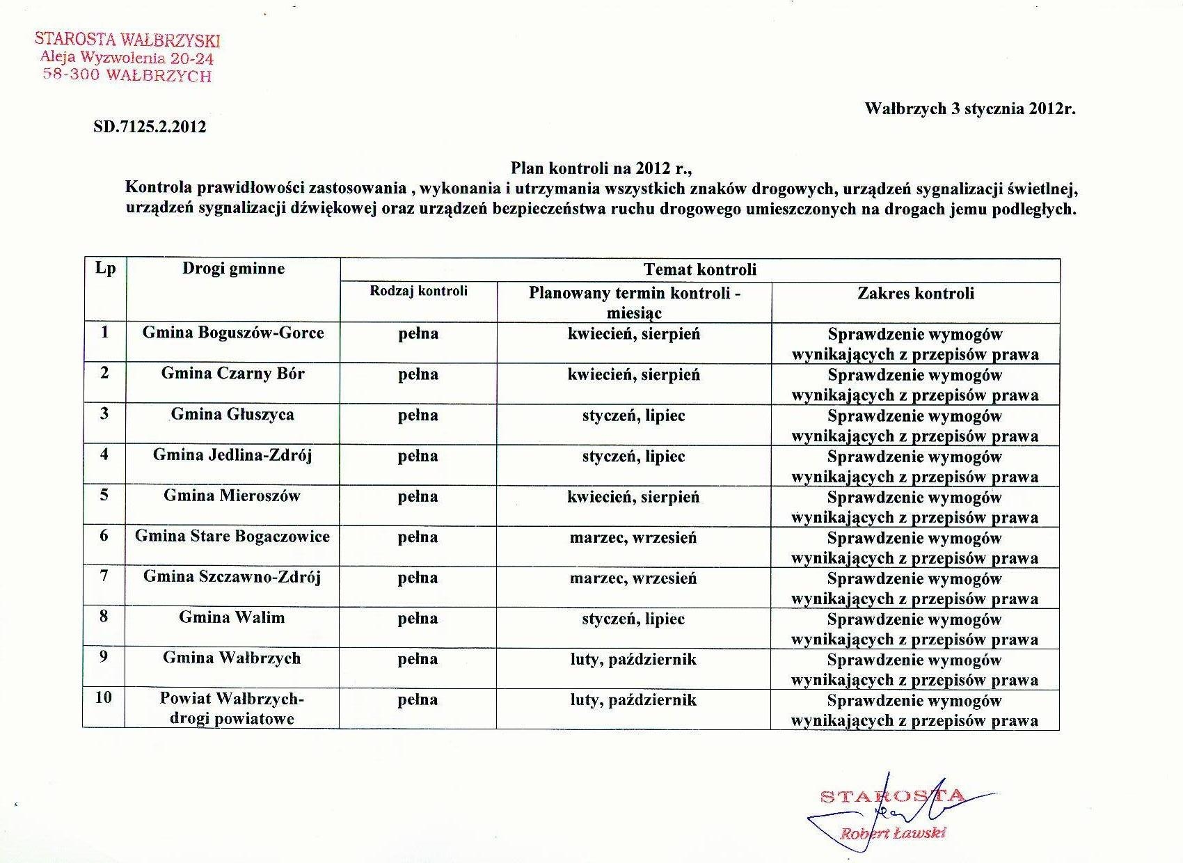 Kontrola prawidłowości zastosowania, wykonania i utrzymania wszystkich znaków drogowych, urządzeń sygnalizacji świetlnej, urządzeń sygnalizacji dzwiękowej oraz urządzeń bezpieczeństwa ruchu drogowego umieszczonych na drogach jemu podległych